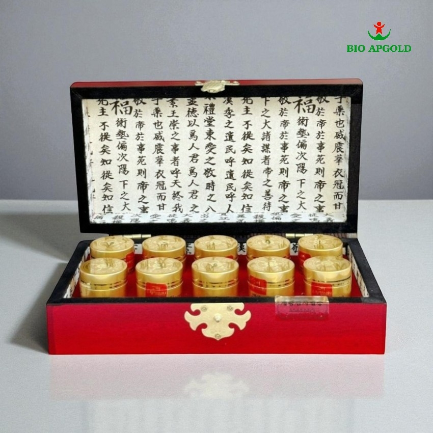 Ngưu Hoàng Thanh Tâm Hộp Gỗ 10 Viên Bio Apgold là sản phẩm cao cấp nhập khẩu từ Hàn Quốc, nổi tiếng với công dụng bổ não, hoạt huyết, ổn định huyết áp và phòng ngừa tai biến mạch máu não.