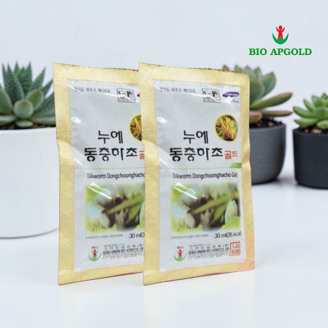 Nước đông trùng hạ thảo Hàn Quốc Bio Apgold hộp 60 gói gỗ trắng cao cấp giúp tăng đề kháng, bồi bổ sức khỏe, giảm mệt mỏi hiệu quả. Dạng nước dễ uống, tiện lợi, phù hợp người cao tuổi, người suy nhược, quà biếu sang trọng, chính hãng Hàn Quốc.