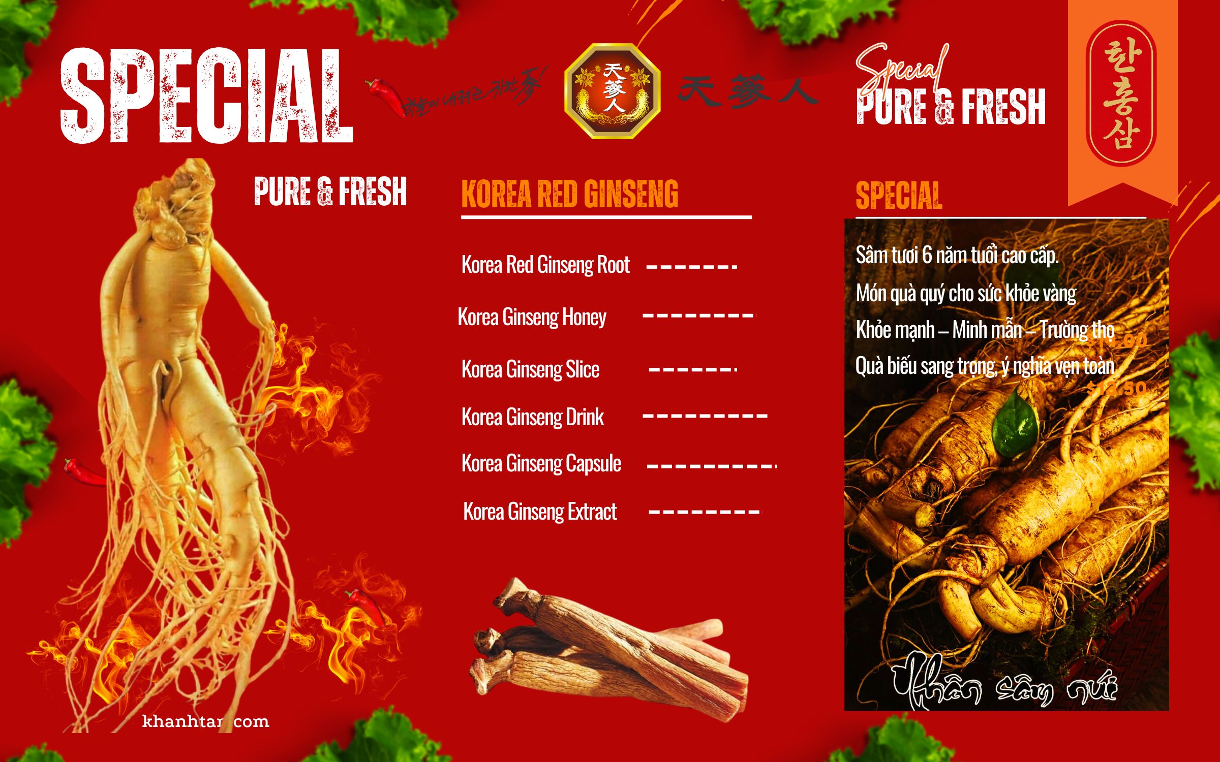 Sâm Hàn Quốc được chế biến dưới nhiều dạng khác nhau thích hợp cho nhu cầu sử dụng của từng khách hàng. Sản Phẩm được thiết kế sang trọng, bắt mắt, và cam kết chất lượng thượng hạng, thich hợp làm quà biếu trong các dịp lễ lớn.